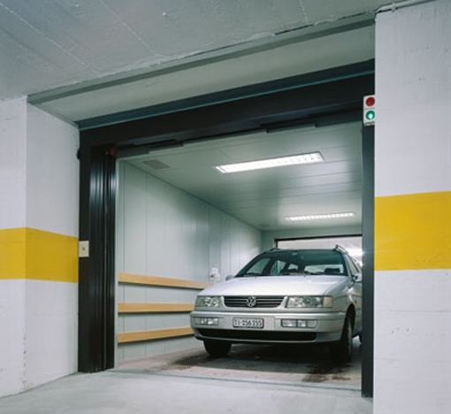 Loại thang máy ô tô thường được thiết kế 2 cửa đối diện nhau để tránh phải lái xe lùi khi ra hoặc vào cabin, tránh bị va chạm.